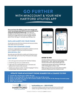 Now you have the ability to view your energy and water use and pay your bill from your mobile device using the Hartford Utilities app. Just like you already do with MyAccount, you can spot trends,
